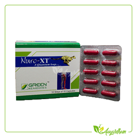 NURO-XT CAPSULE by GREEN REMEDIES is an ayurvedic proprietary medicine to treat neurological conditions of different etiologies. The medicine is a herbomineral preparation which has combination of various medicines like VATA GAJNAKUSH & MAHA VATA VIDHWANSA RAS which makes it a fortifies medicine which is very effective.